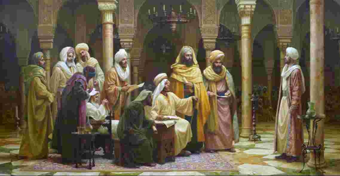 Яна бир суратда Бағдодда ўтказилган имтиҳон жараёни тасвирланган. Тарихдан маълумки, бошқа Шарқ мамлакатларининг муҳаддис олимлари ҳам ҳадисларни тўплаш машғул бўлишган. Асарда турли либослардаги ҳадисшунос олимларнинг тасвирланиши фикримиз далилидир. 10 та буюк муҳаддис олимлар қаршисида Бағдодда ўтказилган имтиҳон жараёнида Имом Бухорий ўзларининг зеҳни, илмларига ишонган тарзда, мағрур турган ҳолда рассом томонидан тасвир этилган. Ушбу тасвирда навқирон муҳаддис олим Имом Бухорий уларнинг саволларига аниқ ва тўғри жавоб бераётган ҳолатлари рассом томонидан жуда моҳирона тасвирланган. Композициядаги бошқа муҳаддис олимларнинг либослари, бош кийимлари, ҳаттоки асарда кўрсатилган интерьернинг кўриниши рассомдан катта билим талаб қилганлиги шубҳасиз.