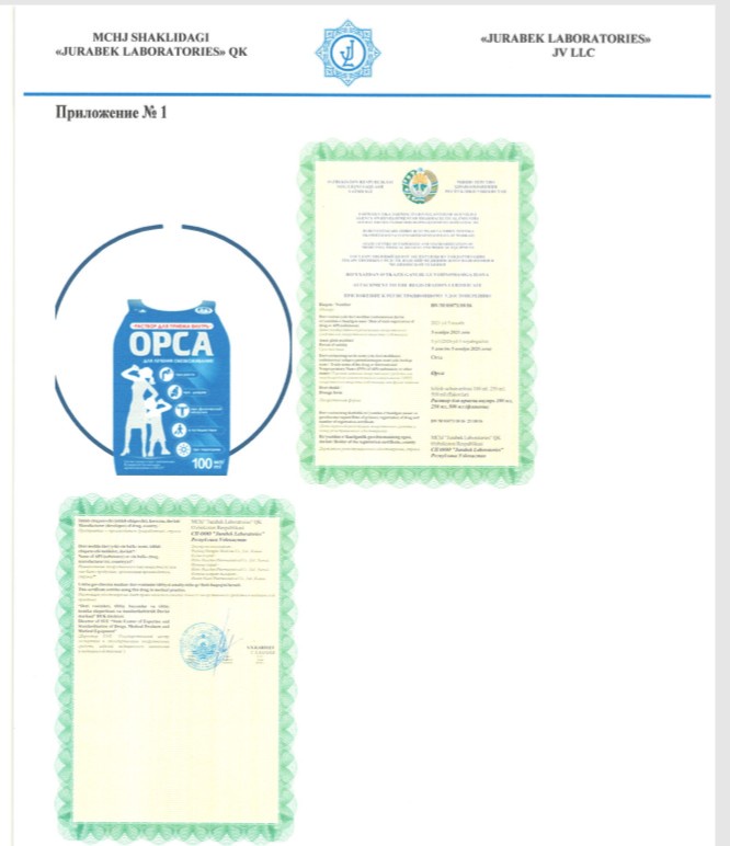 "Joʼrabek laboratories" МЧЖ ҚК томонидан ишлаб чиқарилган "ОРСА" дори воситаси бошқа ишлаб чиқарувчилар томонидан БФҚ сифатида рўйхатга олинганлиги ва мурожаатдаги барча маҳсулотларга Соғлиқни сақлаш вазирлигининг Эксперт комиссиясининг тегишли қарорларига мувофиқ, биологик фаол қўшимчасига (БФҚ) рухсатномалар берилган.