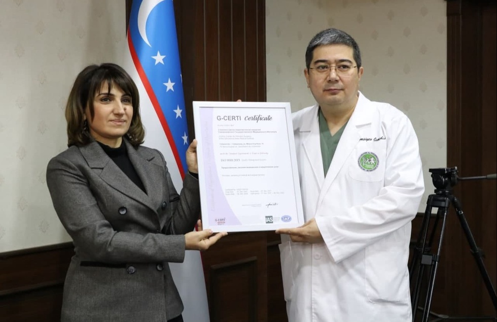 ISO сертификати одатда бирор ташкилотнинг мижозларга кўрсатилаётган сифатли хизмати учун берилади. Хусусан, СамДТИ 2-клиникасининг фаолияти G-CERTI халқаро ташкилоти томонидан ўрганилган ва эътироф этилган.