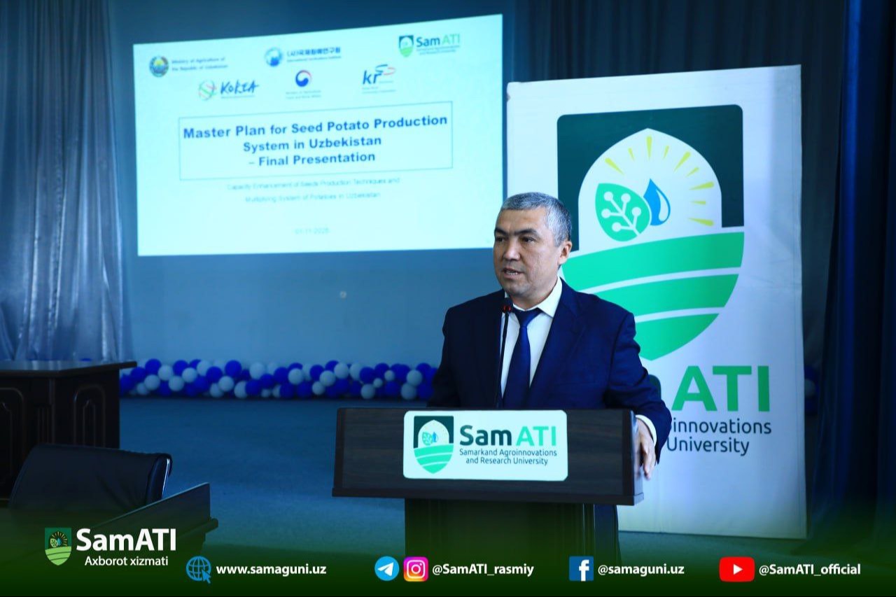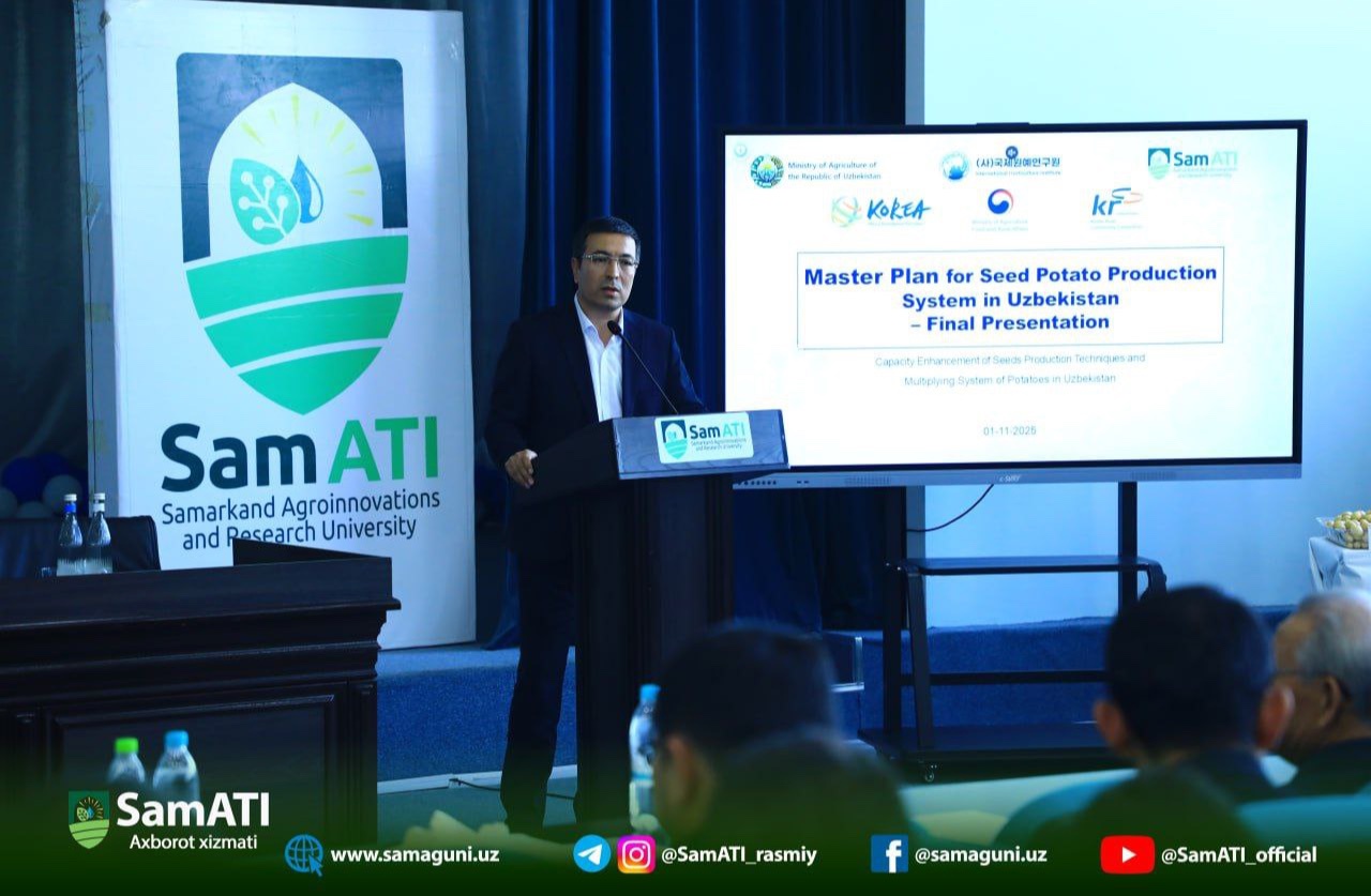 Якунда эса Корея Халқаро боғдорчилик институти мутахассиси Чо Ҳюн Моок уруғлик картошка етиштириш тизимининг бош режасини тақдимот қилди. Эксперт бош режа институтда амалга оширилган илмий изланишлар, Қишлоқ хўжалиги вазирлиги мутахассислари иштирокида мамлакатда соҳанинг ҳолати илмий ўрганилиши натижасида ишлаб чиқилганини таъкидлади. Кореялик олим яқин йилларда картошкачиликда юқори натижаларга эришиш кутилаётганини айтди.