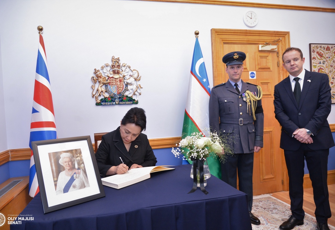 Бугун Ўзбекистон Республикаси Олий Мажлиси Сенати Раиси Танзила Нарбаева Буюк Британия ва Шимолий Ирландия Бирлашган Қироллиги элчихонасига ташриф буюриб, Қиролича Елизавета II нинг вафоти муносабати билан унинг оила аъзоларига ва бутун Буюк Британия халқига Ўзбекистон халқининг ҳамдардлигини етказди.