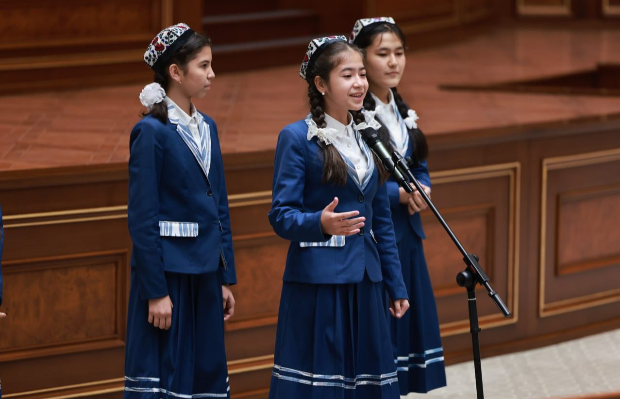 Ўз навбатида, ўқувчилар томонидан мавзуга оид бадиий дастур намойиш этилди. Она тилимизни мадҳ этувчи шеърлар, ҳикматли сўзлар ва қўшиқлар ижро этилди.