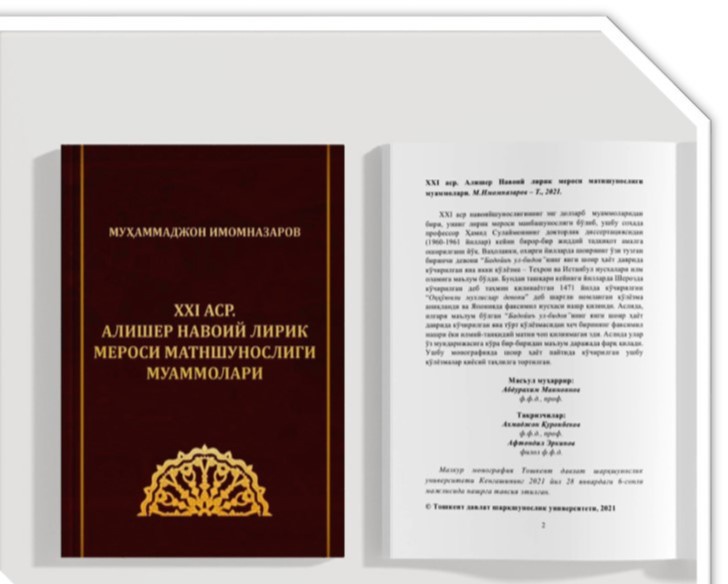 Жорий йилда эса профессор М.Имомназаровнинг “XXI аср. Алишер Навоий лирик мероси матншунослиги муаммолари”, “Ҳайрат ул-аброрда инсон сиймоси ва маънавий дунёси”, М.Пўлатованинг “Шарқ мумтоз адабиётида “Арбаъин” ёзиш анъаналари, А.Мадраимовнинг “Навоий асарлари қўлёзмалари”, 18 тилга таржима қилинган “Навоий ҳикматлари” китоблари нашр этилди.
