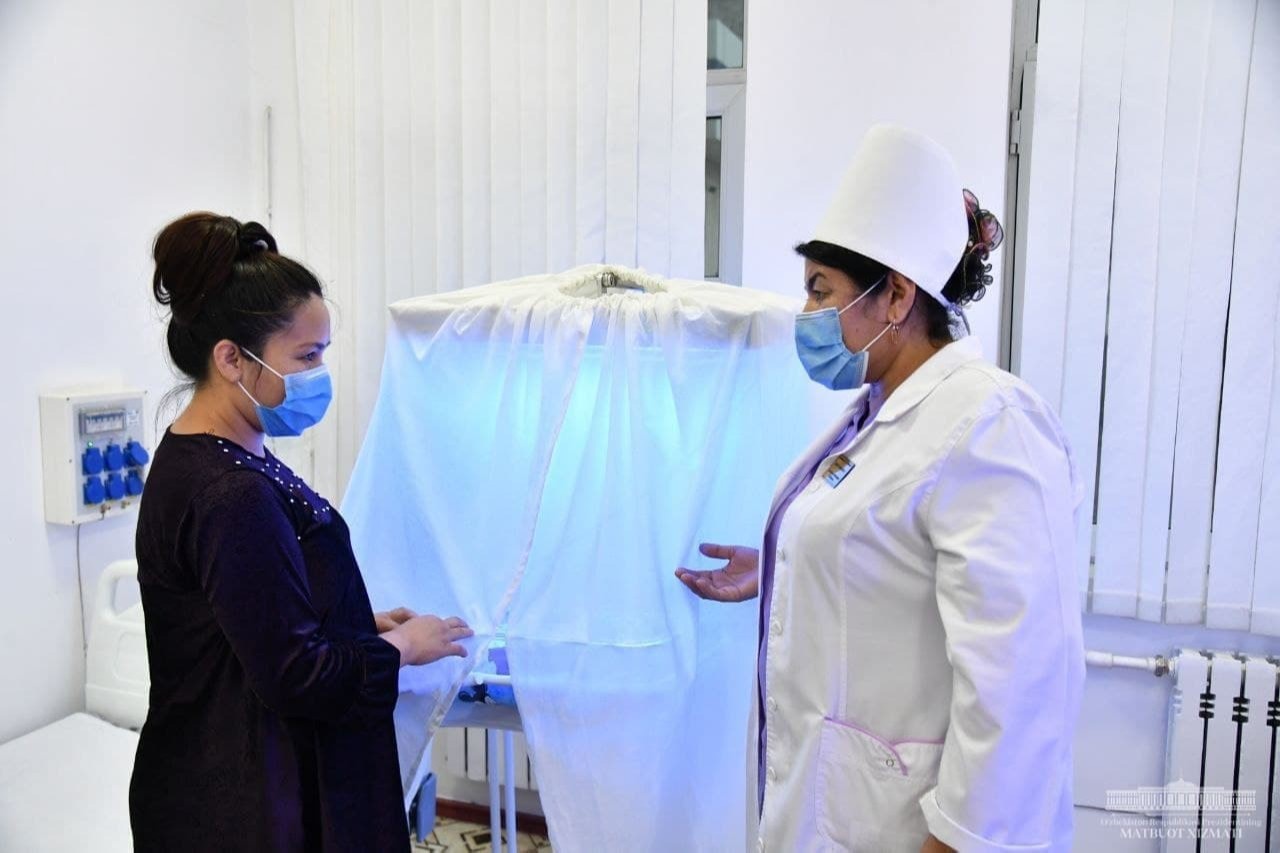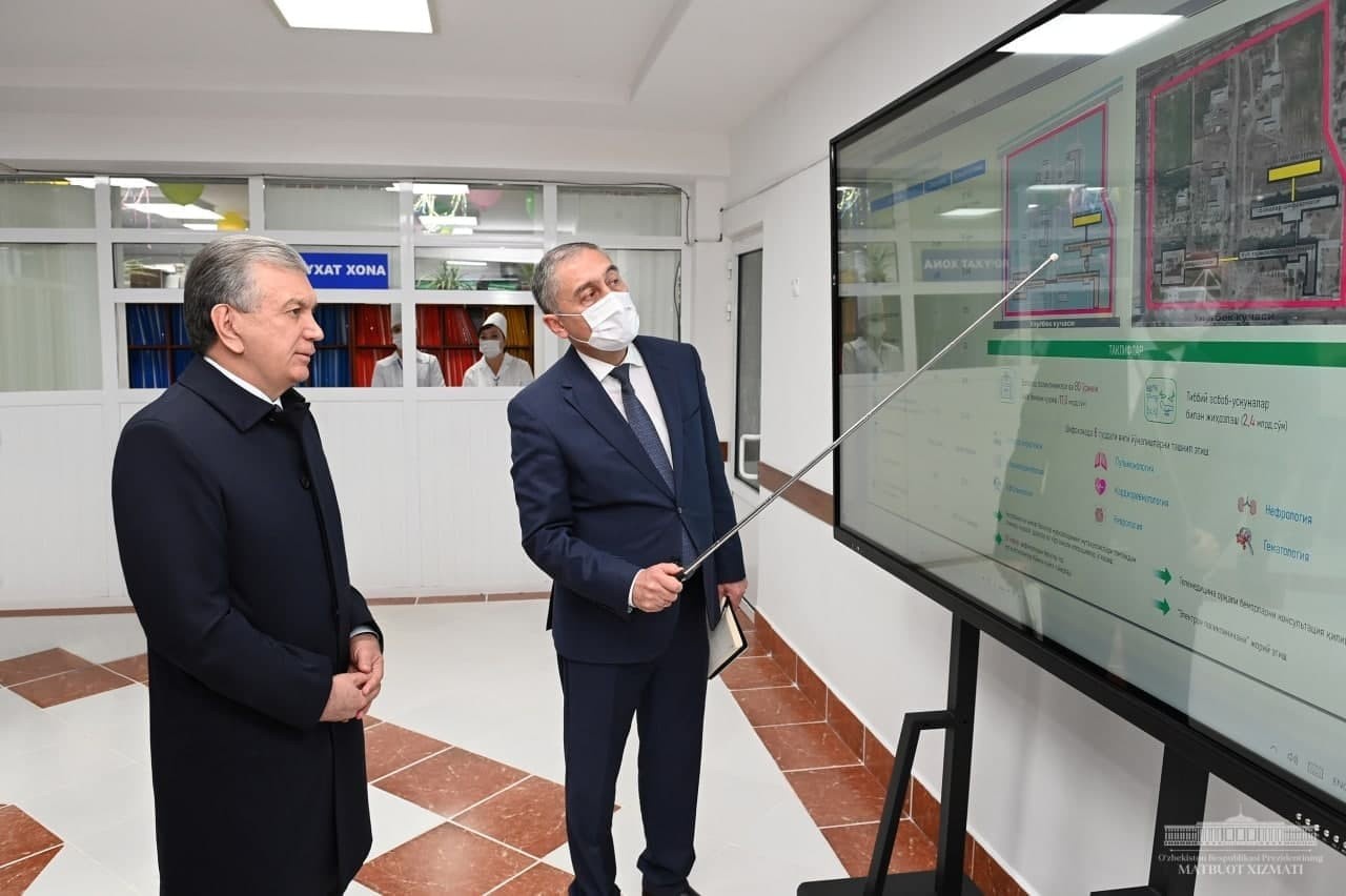 Президент Олмалиқ шаҳридаги оилавий поликлиникани ҳам бориб кўрди.