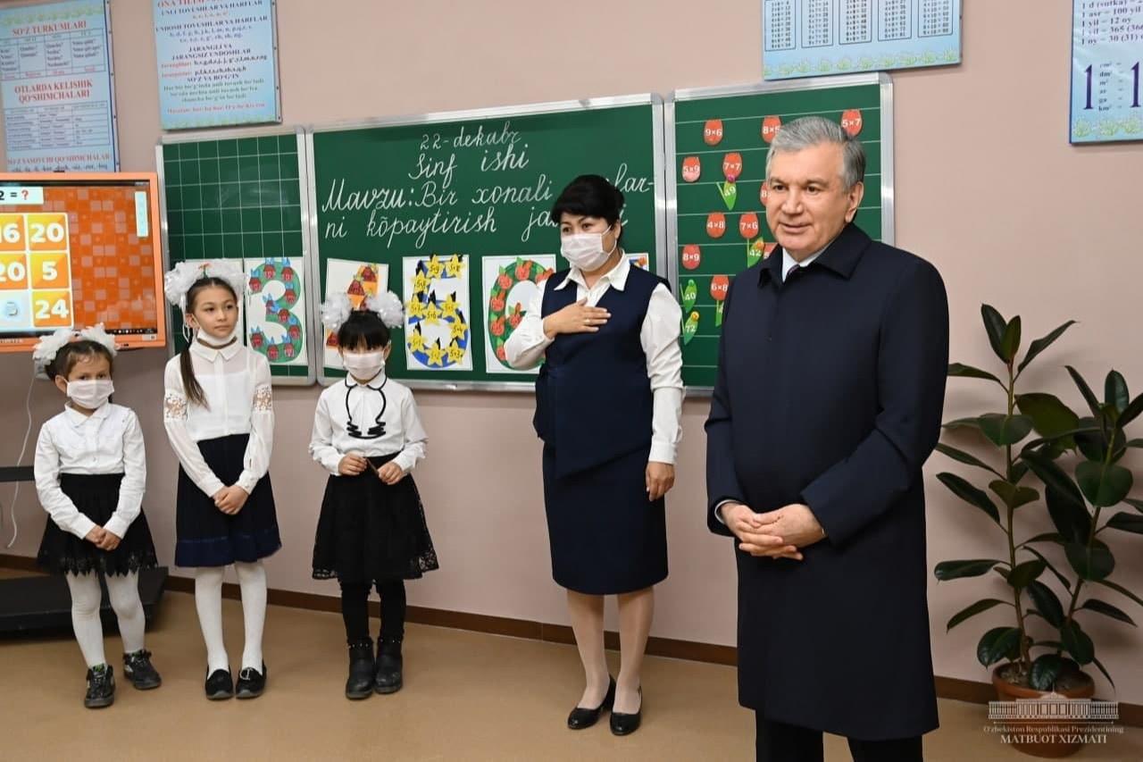 Давлатимиз раҳбари бу ердаги шароитларни кўздан кечирди, мактаб ўқувчилари билан суҳбатлашди.