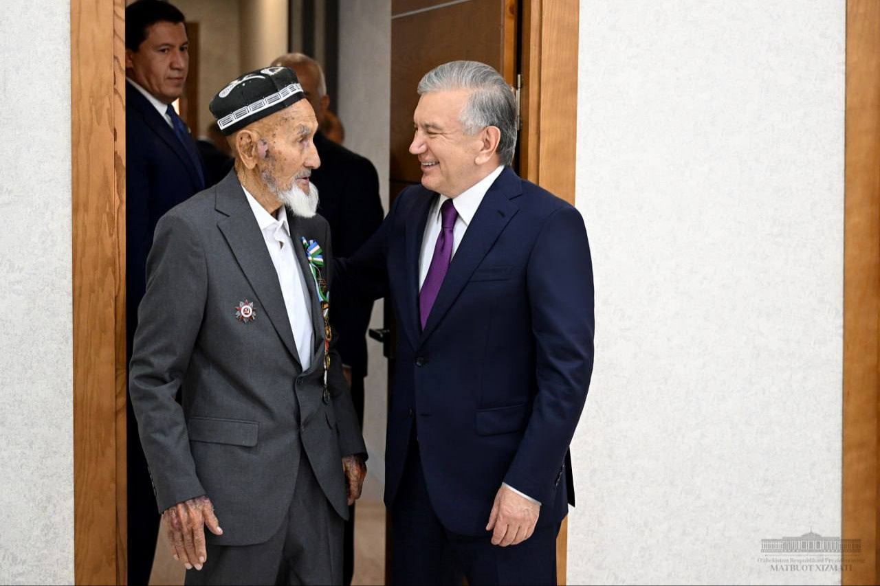 – Сизларни кўрай, байрам билан табриклай деб келдим. Бу, аввало, сизларнинг байрамингиз. Ўша пайтлардаги жасорат ва матонатингиз туфайли кейинги авлодлар тинч, эркин яшади. Машаққатли меҳнат ва зафарларга тўла ҳаёт йўлингиз бугунги ёшлар учун чинакам ибрат мактаби, ватанпарварлик мактаби, десак, айни ҳақиқатни айтган бўламиз. Сиз билан бутун эл-юртимиз фахрланади, – деди давлатимиз раҳбари.