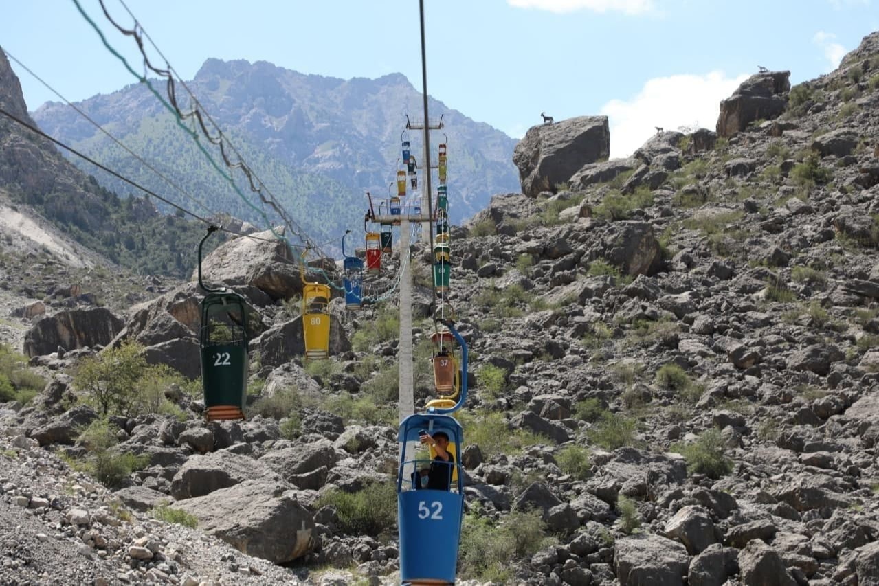 Карнай-сурнай садолари билан рамзий тасма қирқилиб, меҳмон-у мезбонлар бирин-кетин тоғлар бўйлаб ҳаракатланадиган ўриндиқларга ўтирдилар.