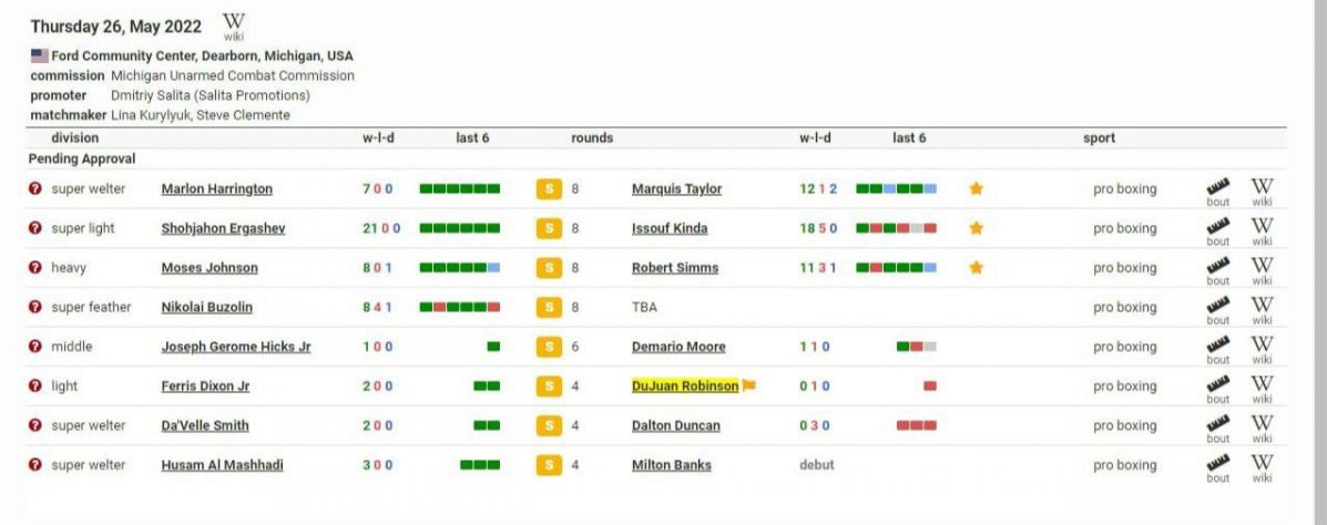 Супер енгил вазн тоифасидаги профессионал боксчимиз Шоҳжаҳон Эргашев (21-0, 19КО) навбатдаги жангини 26 май куни АҚШнинг Мичиган штатида ташкил этиладиган бокс кечасида ўтказaди. Мазкур оқшомда ҳамюртимизга Буркино Фасо давлати вакили Иссуф Кинда (18-5, 7КО) рақиблик қилади. Баҳс 8 раунд этиб белгиланган.