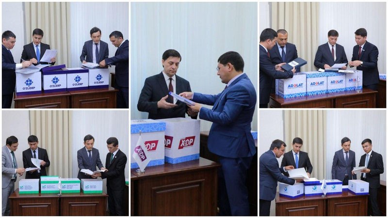 Шу йилнинг 16-17 август кунлари Тадбиркорлар ва ишбилармонлар ҳаракати – Ўзбекистон либерал-демократик партияси, “Миллий тикланиш” демократик партияси, Ўзбекистон Экологик партияси, Халқ демократик партияси ҳамда “Адолат” социал-демократик партияси томонидан сайловда иштирок этишга ижозат бериш бўйича Марказий сайлов комиссиясига “Е-saylov” ахборот тизими орқали мурожаат юборилди ҳамда тўпланган имзо варақалари Марказий сайлов комиссиясига кўриб чиқиш учун топширилди.