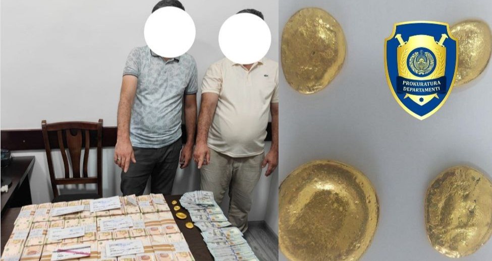 Бош прокуратура ҳузуридаги Департаментнинг Бухоро вилоят бошқармаси томонидан ИИБ ходимлари билан ҳамкорликда ўтказилган тезкор тадбирда фуқаролар Ж.Р., Ж.Н. ва Ф.Ў. Шофиркон тумани ҳудудида жами 437,3 грамм бўлган 4 дона соф қуйма олтин бўлакларини фуқаролар Р.Ш., Ф.Ш.га 7 минг АҚШ доллари ва 300 млн сўмга сотган вақтларида ашёвий далиллар билан ушланган.