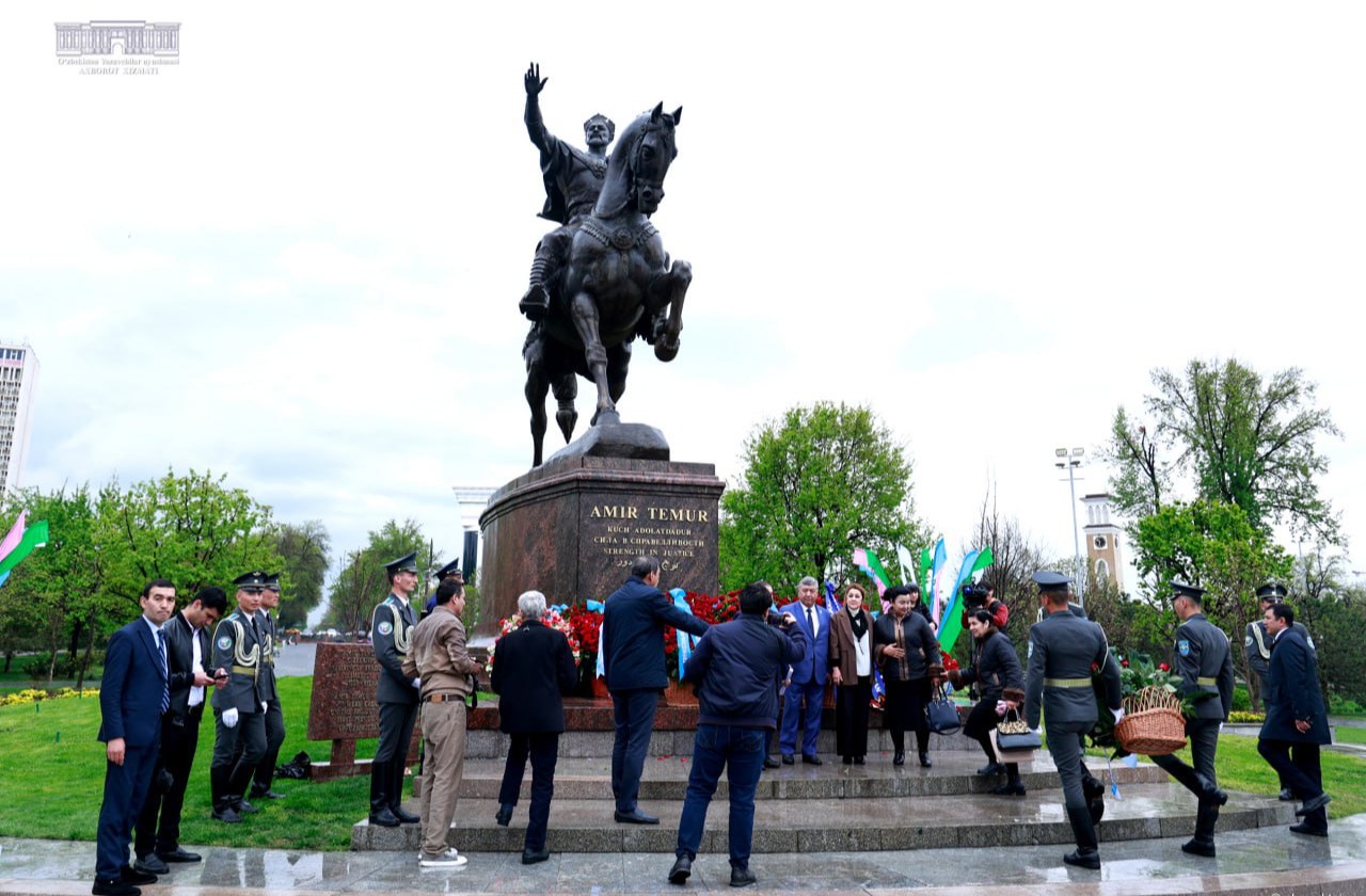 Ўзбекистон Республикаси Президенти Администрацияси, Вазирлар Маҳкамаси, Тошкент шаҳар ҳокимлиги, вазирликлар, Ўзбекистон Ёзувчилар уюшмаси ва қатор ташкилотлар жамоалари ўз гулчамбарларини Амир Темур ҳайкали пойига қўйди. Буюк Соҳибқиронга эҳтиром кўрсатди.