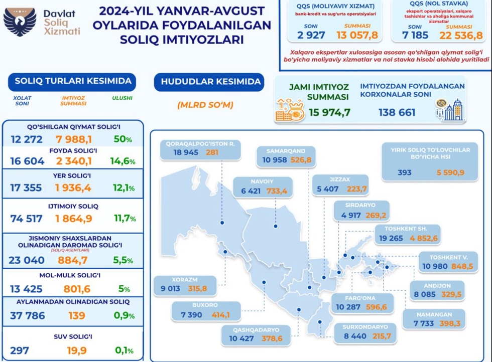- 7 185 та корхона 22,5 трлн сўм миқдорида ҚҚС «ноль» ставкасини қўллаган.