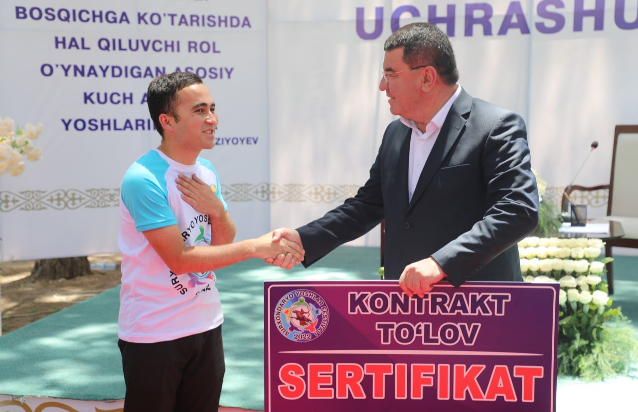 Учрашувда кам таъминланган, қийин шароитда яшаётган оилалар фарзандлари бўлган, шунингдек, энг билимли, изланувчан талаба ёшларни қўллаб-қувватлаш мақсадида уларнинг бир гуруҳига контракт пулини тўлаб бериш имтиёзини берувчи махсус сертификатлар топширилди. Яна бир гуруҳ ёшларнинг Ўзбекистон бўйлаб саёҳати ҳокимлик томонидан қўллаб-қувватланадиган бўлди.