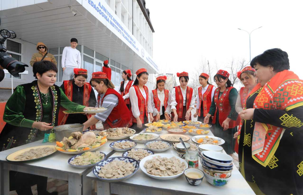 Ажиниёз номидаги Нукус давлат педагогика институтининг талабалар турар жойида қорақалпоқ халқининг миллий таоми — жўхори гуртик тайёрланди.