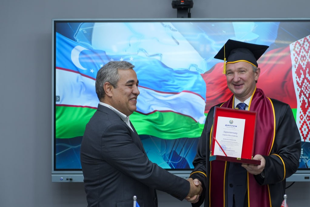 Тадбир давомида Беларусь Миллий техника университети ректори Харитончик Сергей Василевичга фан ва таълим соҳасидаги кўп йиллик ўзаро самарали ҳамкорлик алоқаларини мустаҳкамлашга, республикамизда техника олий таълим ривожига қўшаётган улкан ҳиссаси эътирофи сифатида Фарғона политехника институти «Фахрий профессори» унвони берилди.