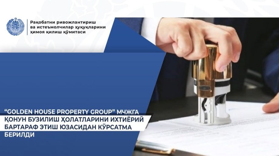 Рақобат қўмитаси томонидан ўрганишлар олиб борилиб, “Golden House” компанияси улуш киритиш асосида кўп қаватли уйдан хонадон сотиб олиш шартномаларида айнан шундай тартиб жорий этгани аниқланди. Бу эса истеъмолчи ҳуқуқларини чекловчи шарт ҳисобланади.