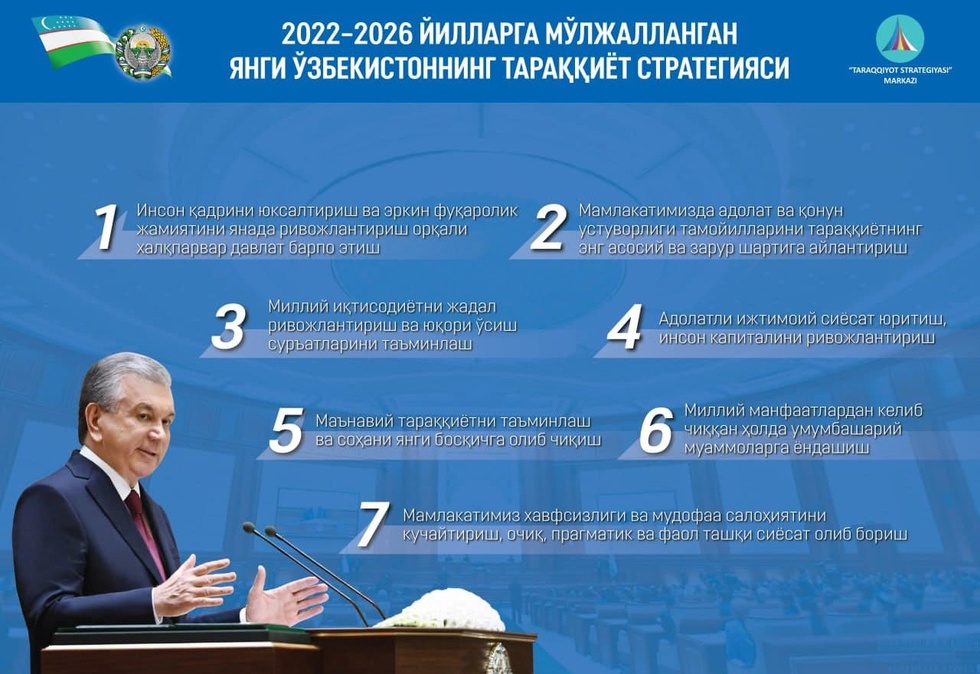 Умуман олганда, мазкур Фармоннинг қабул қилиниши Ўзбекистон келажагини белгилаб беради ҳамда камбағалликни қисқартиришга оид муҳим вазифаларни амалга оширишда дастурамал бўлиб хизмат қилади, десак асло муболаға бўлмайди.