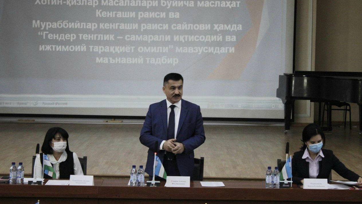 Низомий номидаги Тошкент давлат педагогика университетида гендер тенглик бўйича маслаҳат кенгаши йиғилиши бўлиб ўтди. Тадбирда университет ректори Алишер Умаров, Олий ва ўрта махсус таълим вазирлиги ҳамда Чилонзор тумани маҳалла ва оилани қўллаб-қуватлаш бўлими масъул ходимлари, барча факультетларининг хотин-қизлар масаласи бўйича маслаҳат кенгаши аъзолари иштирок этди. Кенгайтирилган тадбирда университет ректори гендер тенглик масаласига алоҳида тўхталиб, эркаклар ва аёлларга тенг имкониятлар ва шарт-шароитлар яратиш, талаба қизларнинг таълимига, касб эгаллашига катта эътибор қаратиш, улар ўртасида турли мавзуларда кенг тушунтириш ишларини мунтазам олиб бориш зарурлиги, қизларни ҳаётга тайёрлашга барча бирдек жавобгарлик ҳисси билан ёндашиши лозимлигига алоҳида тўхталиб ўтди.