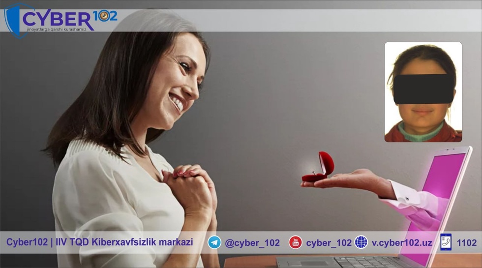 Гумонланувчи сифатида тергов органларига жалб этилган Г.Б., А.Қ. билан «Telegram» мессенжерида «Фаррух-96» профили орқали ўзини Фаррух деб таништириб, A.Қ.ни яхши кўриб қолганлигини, келгусида унга уйланиш мақсади борлигини айтиб, унинг ишончига кириб олган.