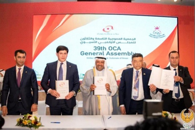 Тошкентнинг 2025 йилги ёшлар Осиё ўйинларини қабул қилиши юзасидан тузилган шартномага ООК президенти Шайх Аҳмад Аҳ Фаҳад Ал Сабах, ООК вице-президенти Отабек Умаров, МОҚ раиси Рустам Шоабдураҳмонов, Жисмоний тарбия ва спорт вазирининг биринчи ўринбосари Равшан Эрматов ҳамда Тошкент шаҳар ҳокимлиги вакили Иззатбек Жўраев имзо чекди.