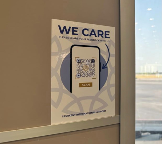 Энди ҳар бир йўловчи смартфон орқали QR-кодни сканерлаш орқали аэропорт фаолиятига баҳо бериши ва ўз таклифларини қолдириши мумкин. Бу бошқарув компаниясига йўловчиларнинг эҳтиёжларини яхшироқ тушунишга ва хизмат кўрсатиш, навигация ва ноавиация хизматлари сифатини яхшилашга ёрдам беради.