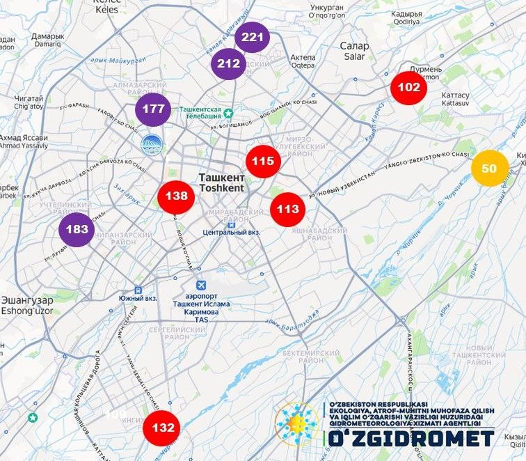 - PM2,5 майда дисперсли заррачалар миқдори 144 мкг/м3 ни ташкил этди, рухсат этилган меъёрлардан (60 мкг/м3) 2,4 марта ошган.