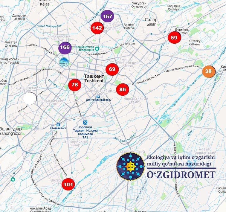 - PM2,5 майда дисперсли заррачалар миқдори 99.5 мкг/м3 ни ташкил этди, рухсат этилган меъёрлардан (60 мкг/м3) 1.6 марта ошган.