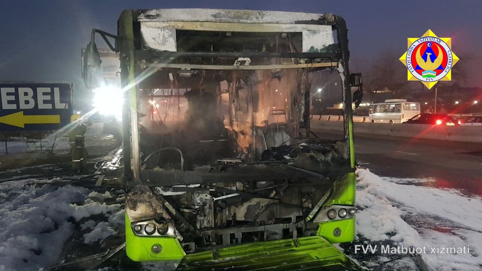 Воқеа жойига 4 дақиқадан сўнг Тошкент шаҳар Фавқулодда вазиятлар бошқармаси ёнғин-қутқарув гуруҳлари етиб келишди. Соат 06:26да ёнғин қуршаб олинган ва соат 06:39да тўлиқ баратраф этилди. Автобус ёниб кетишига двигатель бўлинмасидаги қисқа туташув сабаб бўлганлиги таҳмин қилинмоқда.