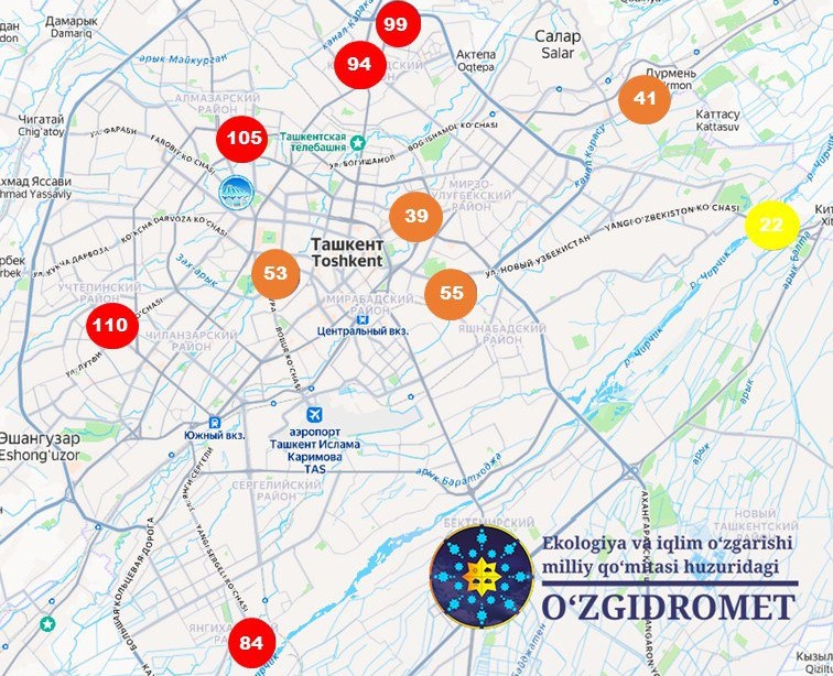 Шу билан бирга, PM2.5 майда дисперсли заррачалар концентрацияси 70,2 мкг/м³ гача кўтарилиб, рухсат этилган меъёр (60 мкг/м³)дан 1,2 марта юқори қайд этилди.