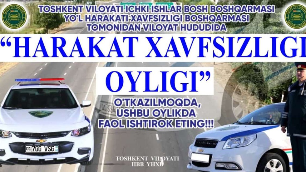 Ойлик доирасида бу ишларга кенг жамоатчиликни жалб этиш орқали таъсир чораларини кучайтириш режалаштирилган. Шундай экан, ҳар бир ҳаракат иштирокчиси ўзининг ва ўзгаларнинг хавфсизлигини таъминлашга масъул эканлигини унутмаслиги лозим, деб хабар беради Ўзбекистон Республикаси Ички ишлар вазирлиги Йўл ҳаракати хавфсизлиги Бош бошқармаси матбуот хизмати.