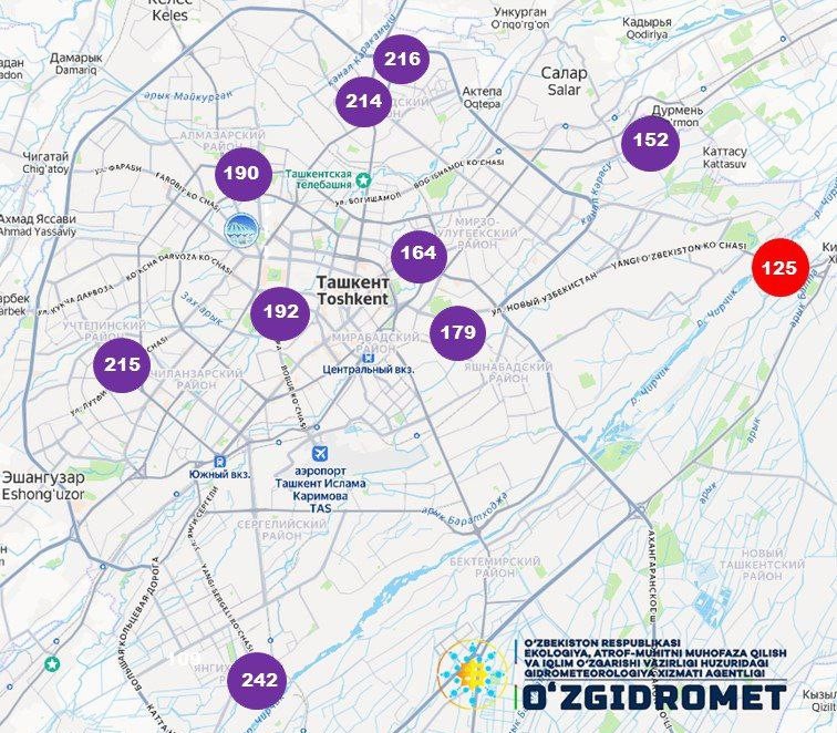 Яъни, PM10 – 276,3 мкг/м³ ни ташкил этиб, белгиланган меъёр (300 мкг/м³)дан ошмаган. PM2.5 кўрсаткичлари эса 189 мкг/м³ бўлиб, рухсат этилган меъёр (60 мкг/м³)дан 3,1 баробар юқори қайд этилди.