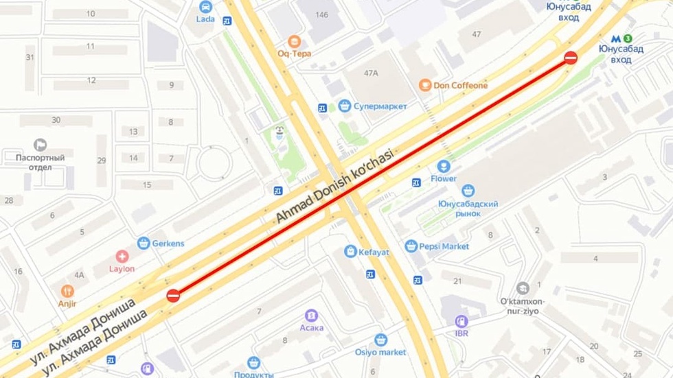 Аввал маълум қилинган йўл-таъмирлаш ишларини жадаллаштириш, ишларни тезроқ якунлаш мақсадида Аҳмад Дониш кўчасининг Амир Темур шоҳ кўчаси устидан ўтган кўприкнинг бир тарафи, яъни 7-сон (олдинги 17-сон) Шаҳар клиник шифохонасидан Юнусобод метроси йўналишидаги (мўлжал: Универсам) қисми автотранспорт воситаларининг қатнови учун тўлиқ ёпилади.