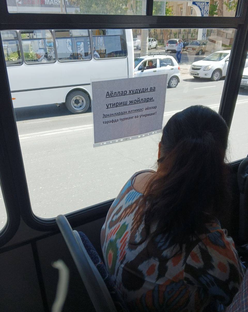 Жорий йилнинг 16 апрел куни ижтимоий тармоқларда 43-сонли йўналишдаги автобус салонининг ички қисмида аёллар ва эркаклар учун махсус жой ажратилганлигини тарғиб қилувчи эълон автобус салонига жойлаштирилганлиги акс этган танқидий фото жойлаштирилди.