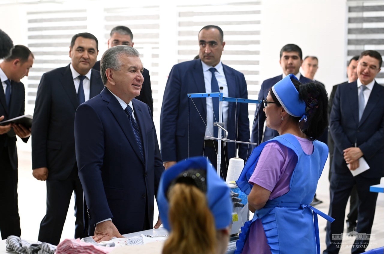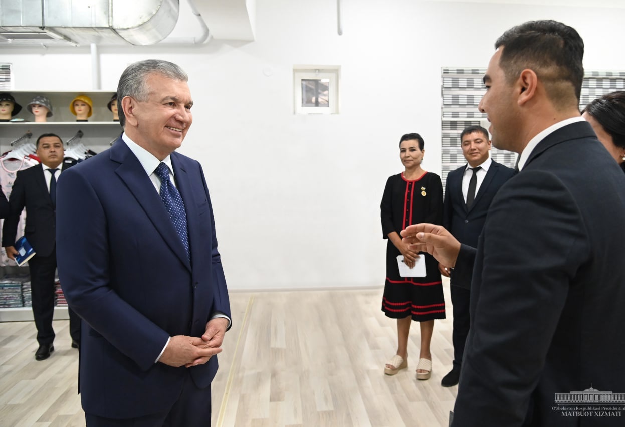 Президентимиз бу ерда иш бошлаган тикувчилик корхоналари фаолияти билан танишди, тадбиркорлар ва харидорларга яратилган шароитларни кўздан кечирди.