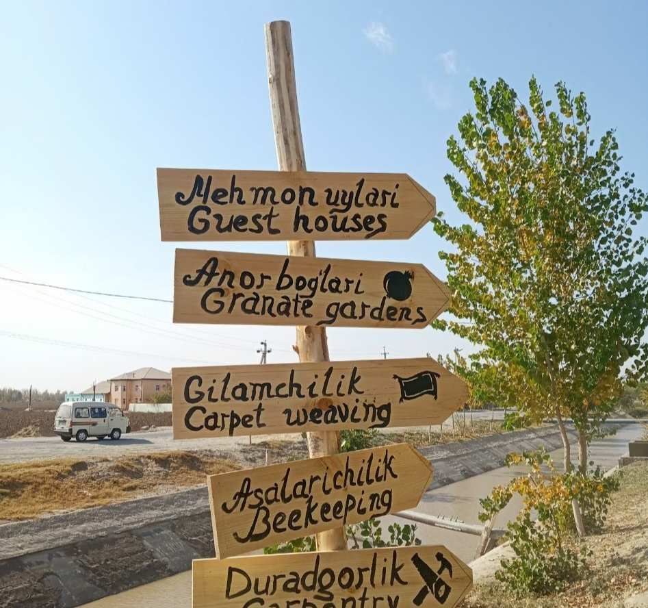 Ушбу ўрнатилган йўл кўрсаткич белгилари ҳудуддаги барча туризм хизматларини, туризм объектларини ва бошқа 20 га яқин туризм йўналишларни ҳам ўзида акс этади. Бу ўз навбатида ушбу туризм қишлоғига ташриф буюрган сайёҳларга янада қулайлик яратишига хизмат қилади.