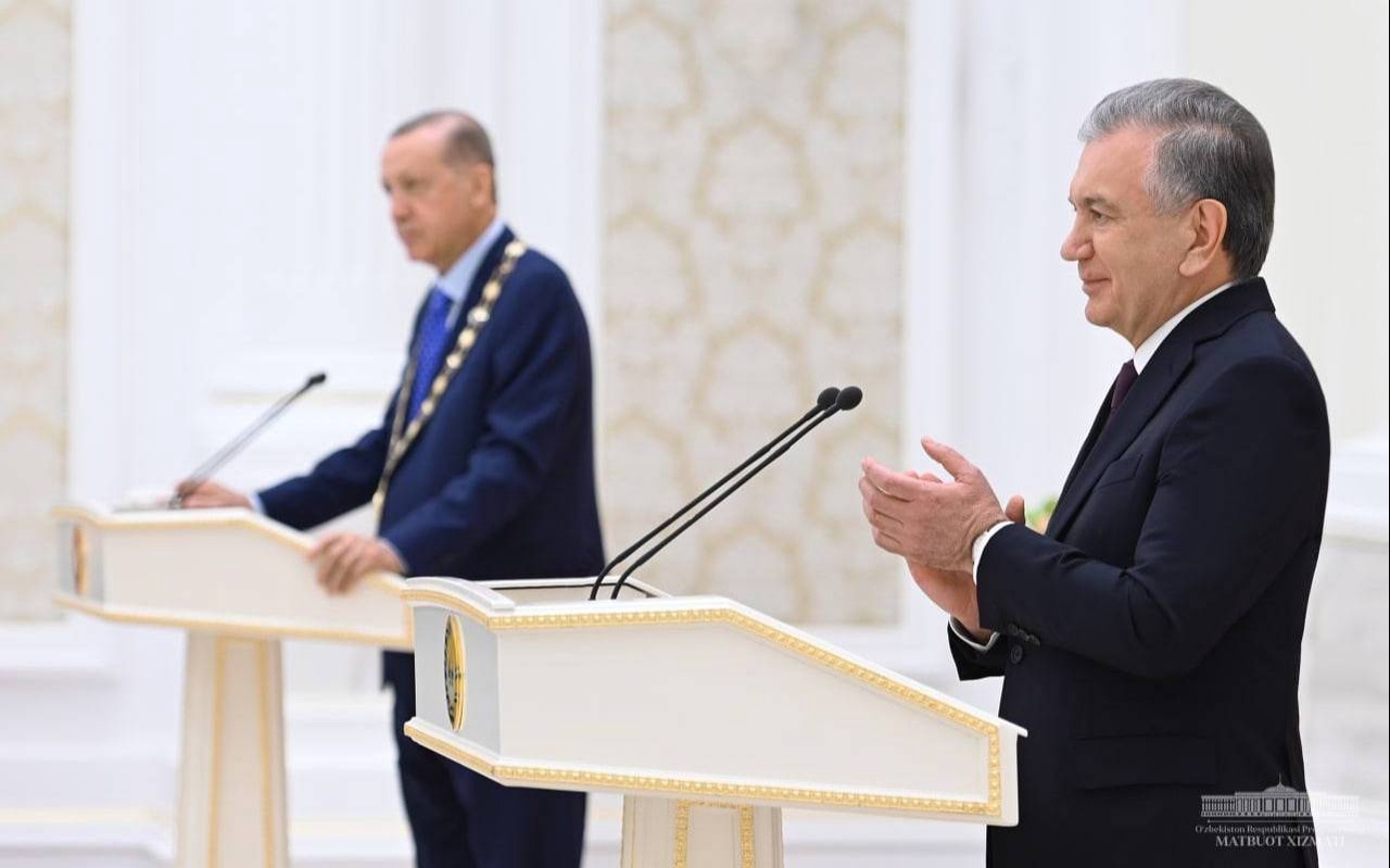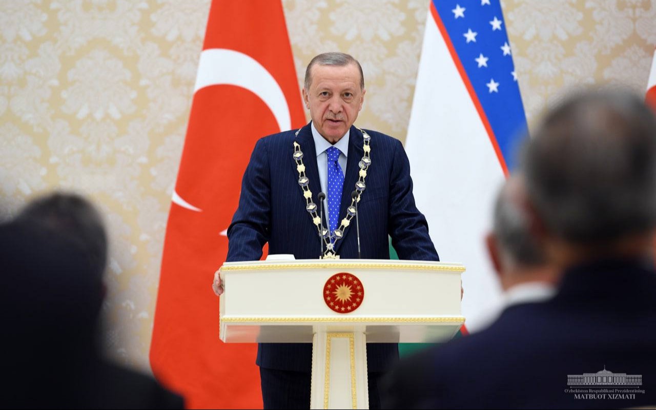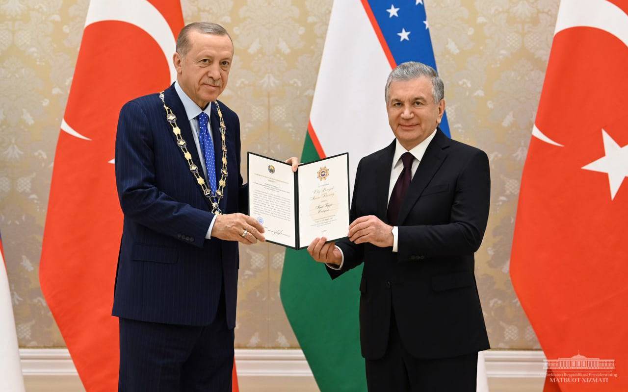Режеп Таййип Эрдоғанга мукофотни давлатимиз раҳбари Шавкат Мирзиёев топширди.