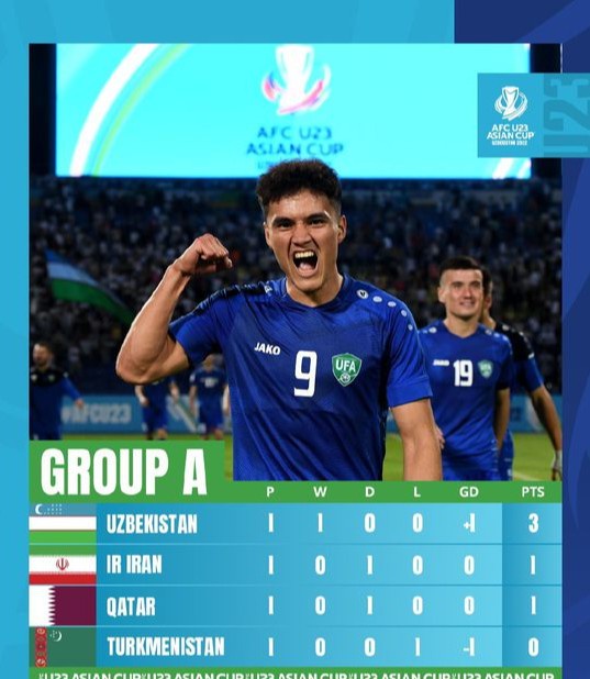 1. Ўзбекистон У-23  3 очко,