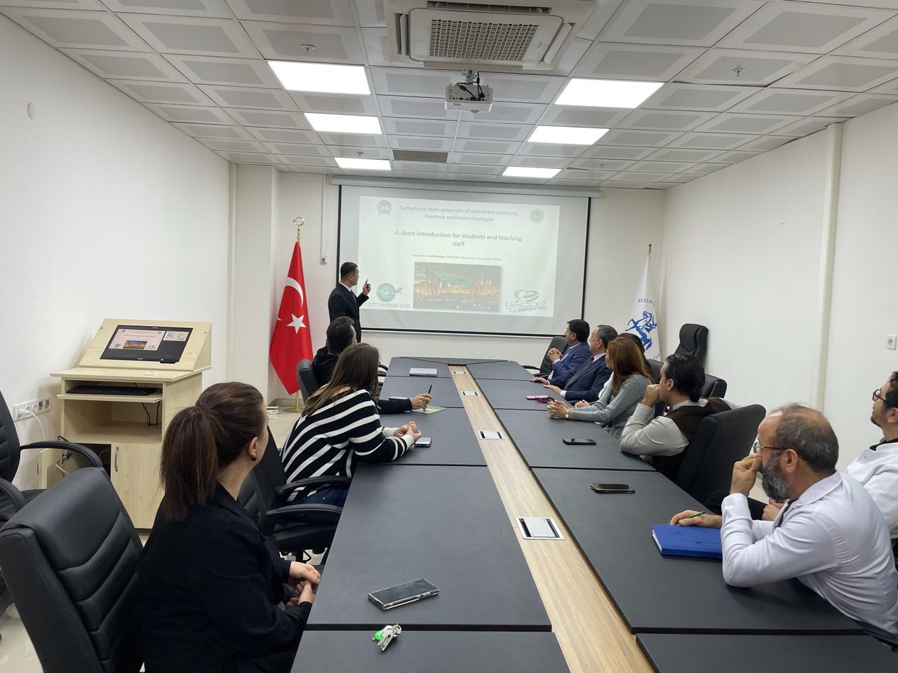 Университет Илмий ишлар ва инновациялар бўйича проректори О.Ачилов ветеринария ва биотехнология соҳаларида ҳамкорликда кадрлар тайёрлаш ва университетлар нуфузини ошириш бўйича халқаро тажриба алмашинув борасида тақдимот қилди. Нутқи давомида Самарқанд давлат ветеринария медицинаси, чорвачилик ва биотехнологиялар университетининг тажрибаси билан яқиндан таништирар экан, икки университет ўртасида ҳамкорликни ривожлантириш механизмлари ҳақида ўзаро манфаатли таклифлар билдирди.