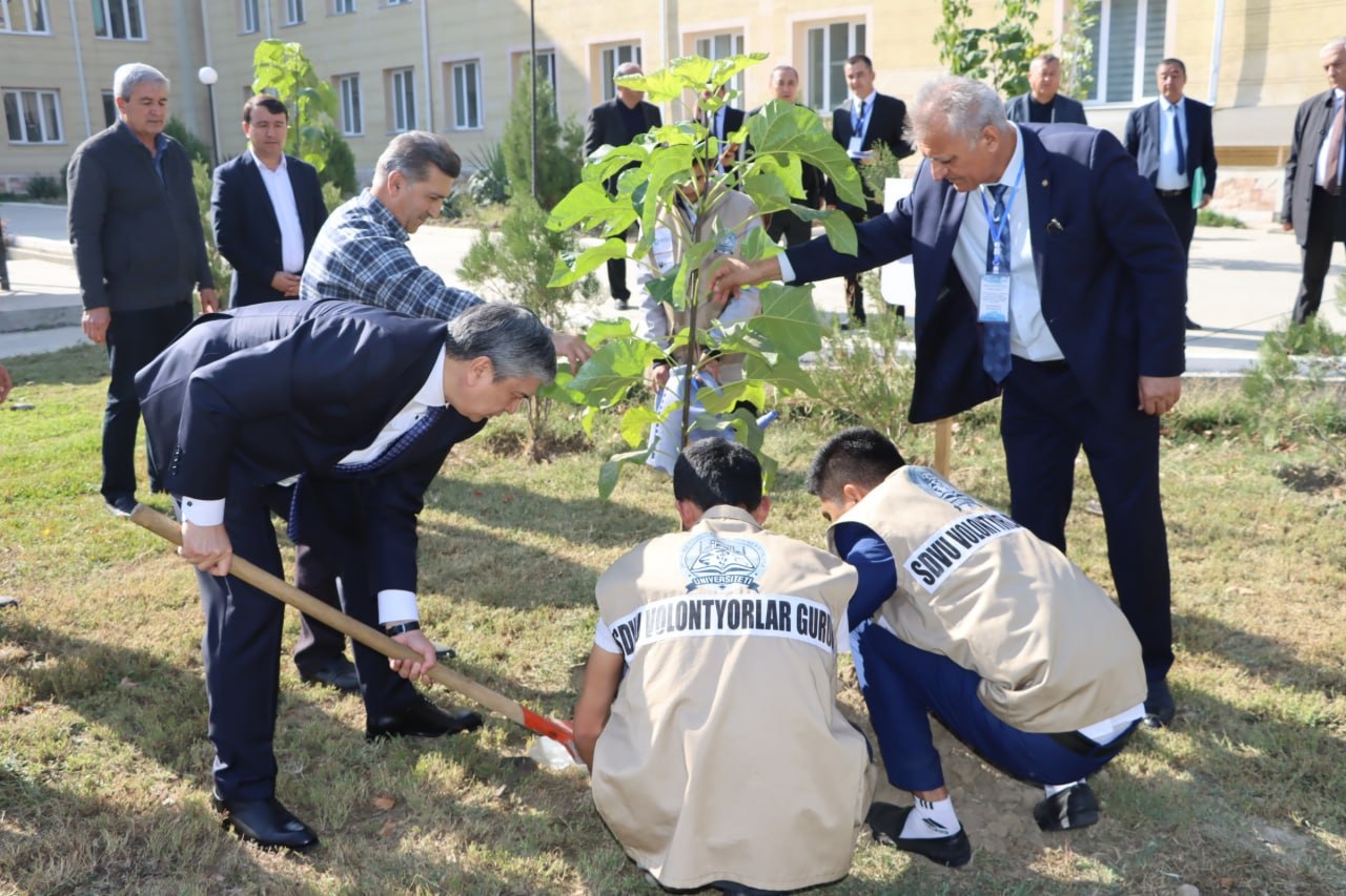 Университет ҳудудида янгидан барпо этилаётган боғда дарахт кўчатлари ўтқазилди.
