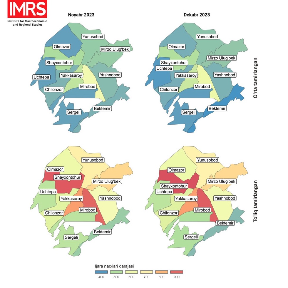 Макроиқтисодий ва ҳудудий тадқиқотлар институти (МҲТИ) мутахассислари 2023 йилнинг декабрь ойида Тошкент шаҳрида уй-жой учун таклиф этилган ижара нархларини таҳлил қилди.