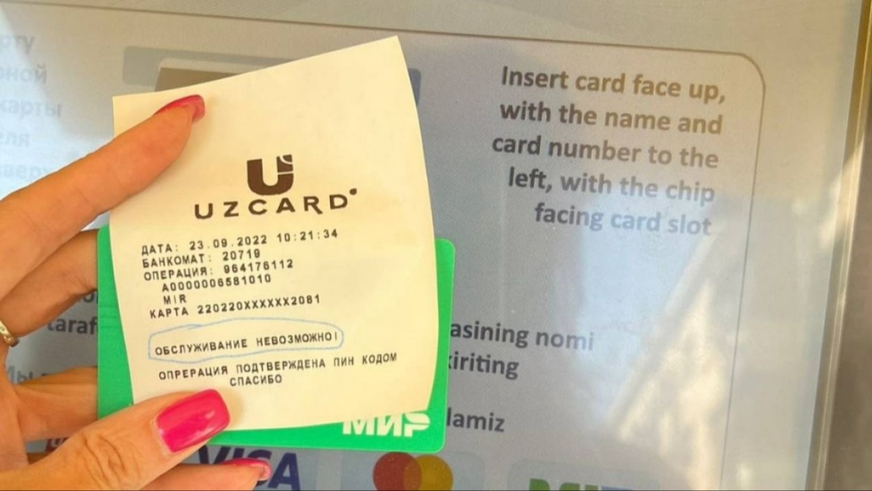 Шу сабабли 2022 йил 23 сентябр куни соат 09:00 дан UZCARD инфратузилмасида “Мир” карталарига ҳамда хорижда UZCARD – “Мир” кобейжинг карталарга хизмат кўрсатишни вақтинча тўхтатилганини маълум қилади.