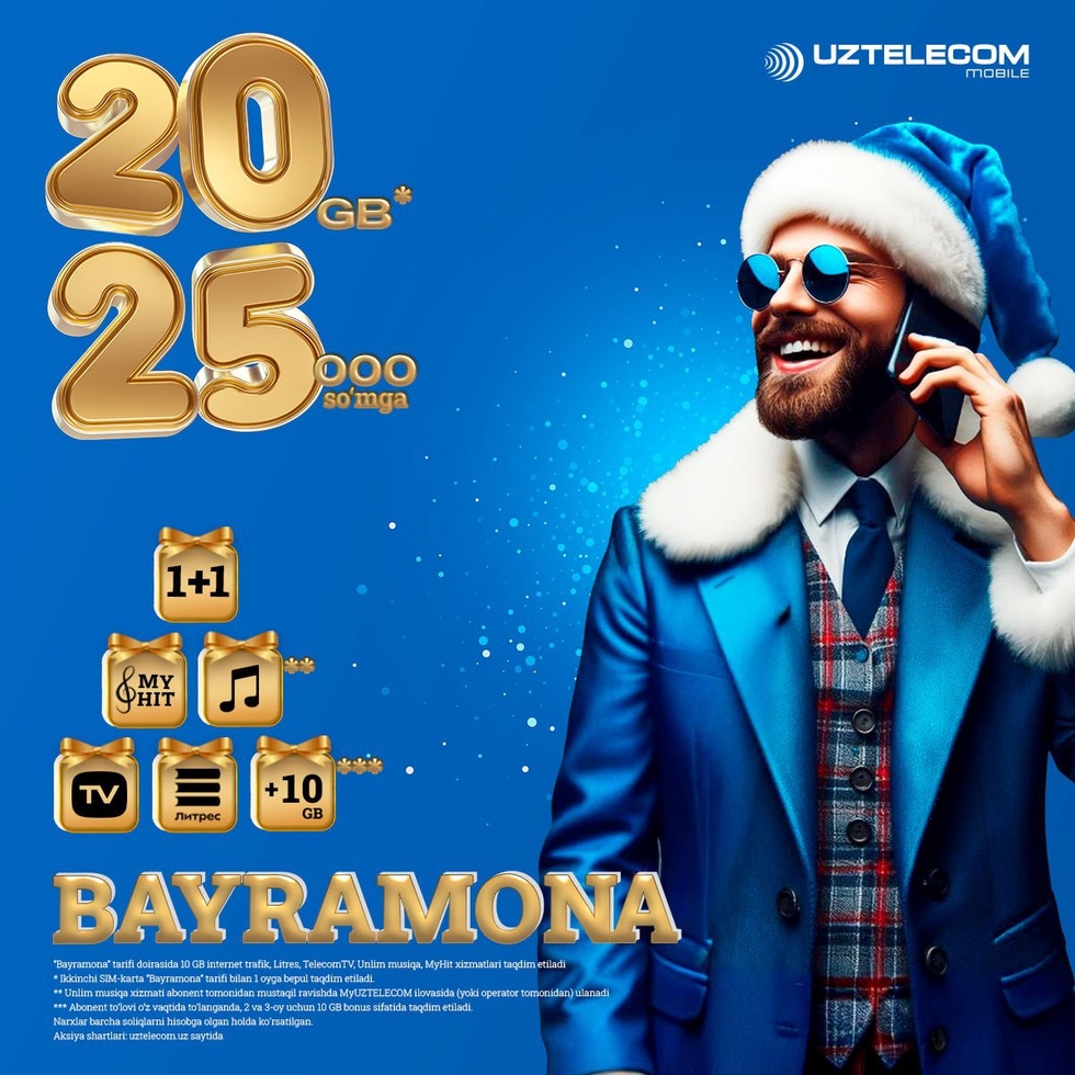 «БАЙРАМОНА» тарифида Сизни қуйидаги бонуслар кутмоқда: