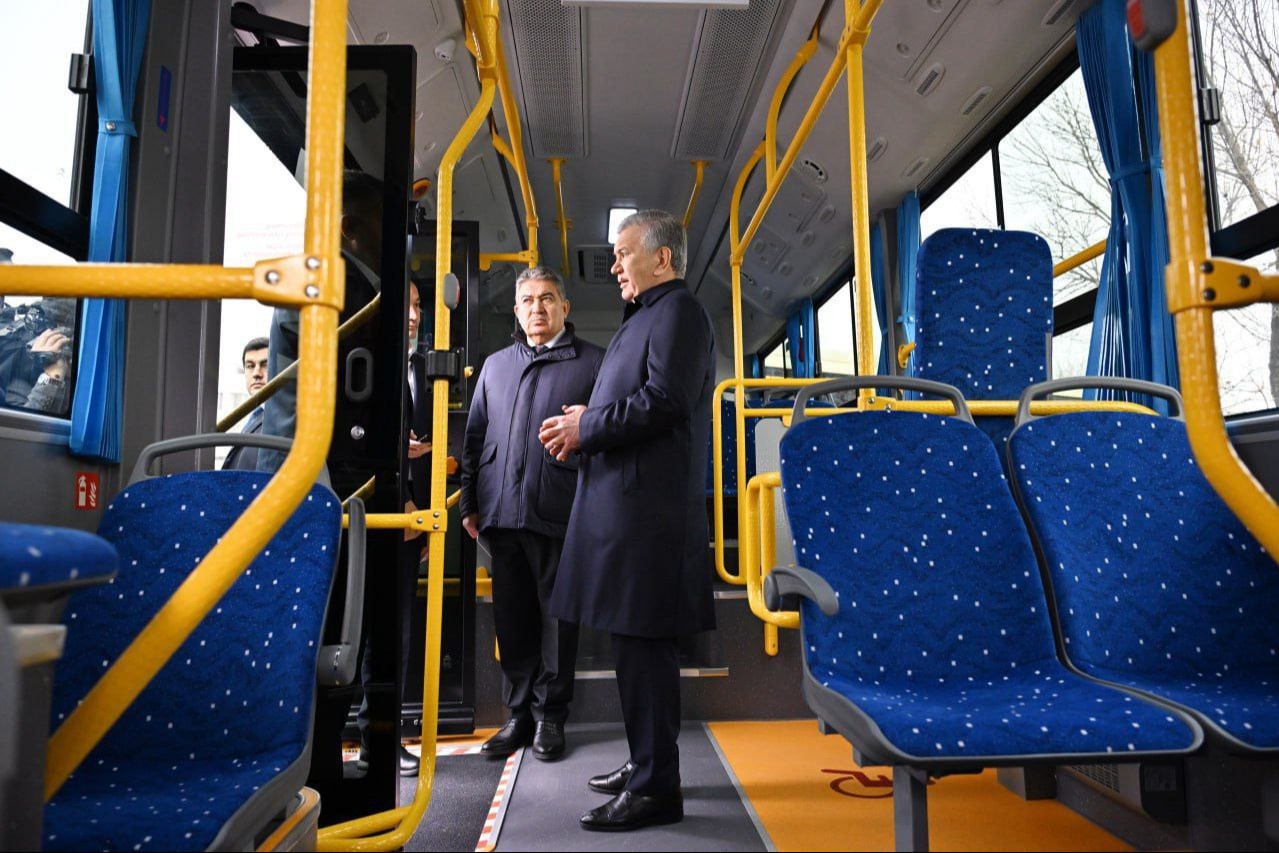 Давлатимиз раҳбари мутасаддиларга юртимиз шаҳарларининг жамоат транспорти паркларини шундай замонавий автобуслар билан тўлдириш ишларини изчил давом эттириш, фуқароларга сифатли хизмат кўрсатиш бўйича кўрсатмалар берди.