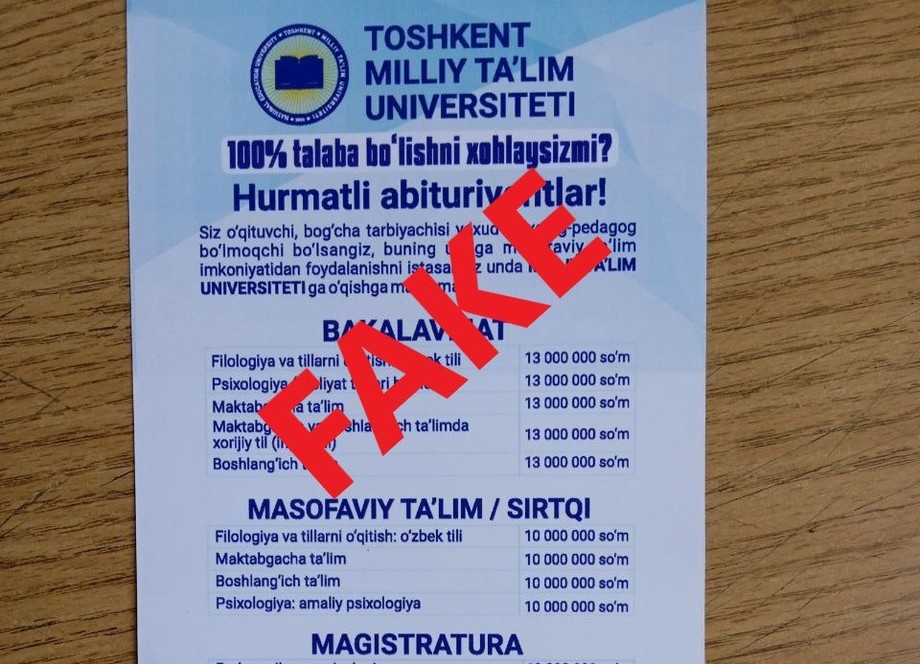 Абитуриентлар ва уларнинг ота-оналаридан фақатгина вазирликнинг edu.uz расмий сайтида кўрсатилган давлат, нодавлат ва хорижий ОТМлари рўйхатидаги олий ўқув юртларини танлашлари сўралди.
