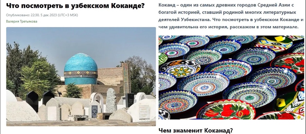 Мақолада Қўқон Марказий Осиёдаги энг қадимий шаҳарлардан бири эканлиги маълум қилинган. “Шаҳар ҳақидаги илк маълумотлар Х асрга оид манбаларда учрайди, — деб ёзади муаллиф. – Қадимий манбаларда шаҳар турли номларда келтирилади”.
