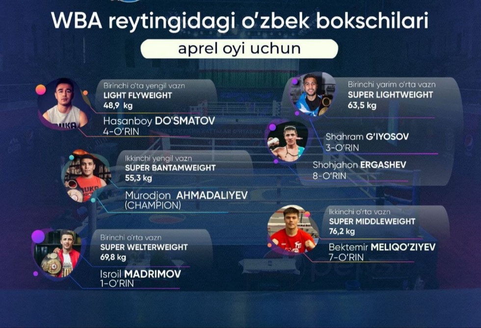 Унга кўра, рейтингдан олти нафар ўзбекистонлик боксчи ўрин олган. Бу ойда боксчиларимиз яхшигина кўтарилишга эришишган.