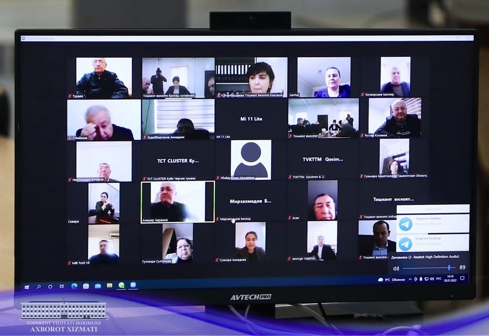 Дастлаб Президентимизнинг 2020 йил 1 майдаги “Ҳудудларни ижтимоий-иқтисодий ривожлантиришни рейтинг баҳолаш тизимини жорий этиш тўғрисида”ги қарори ижроси бўйича ишлар таҳлил қилинди. Хусусан, солиқ тўловларининг йиғилиш даражаси 2021 йил 1 декабрь ҳолатига 4 триллион 288,9 миллиард сўмни ташкил этди. Амалга оширилган солиқ тўловлар ҳажми ҳудудлар кесимида таҳлил қилинганида вилоятдаги солиқ тушумлари асосий улушини Зангиота (12,3 %), Қибрай (10,7%), Ангрен шаҳри (6,2%), Тошкент тумани (6,0%), Чирчиқ шаҳри (6,2%) ташкил этмоқда.