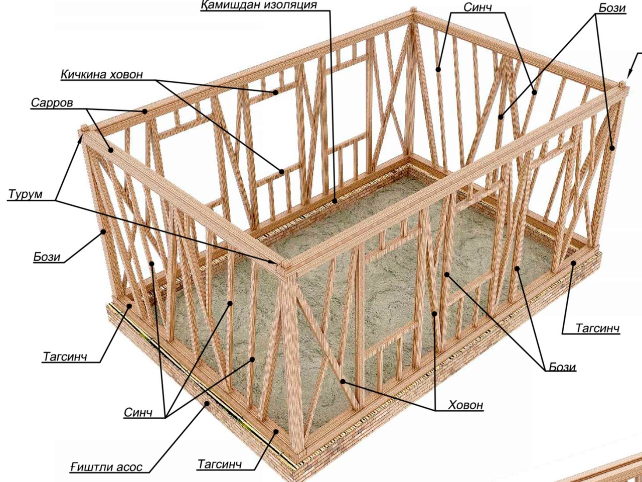 Учинчидан, деворлар қўшқават синчдан кўтарилгани боис, хона ҳарорати ёзда салқин, қишда илиқ бўлиши таъминланган.