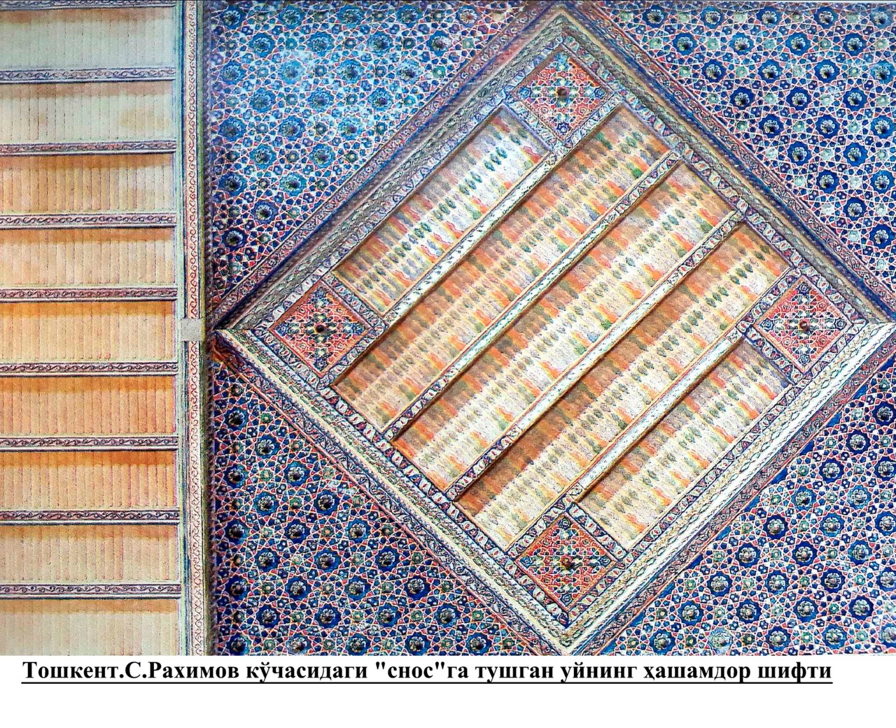 Пойтахт меъморлигига бағишлаб мустақиллик арафасида чоп этилган бир монографияга “снос”га учраган иншоотлардаги беқиёс наққошлик санъати намуналаридан суратлар киритилган бўлиб, аксарияти Себзор даҳасидаги иморатларига тааллуқли эди. Ҳозир мавжуд баъзи халқ меъморлиги ёдгорликларини ҳисобга олмаганда, антик давр меъморлиги билан боғловчи объектлардан бирортаси қолмаган.