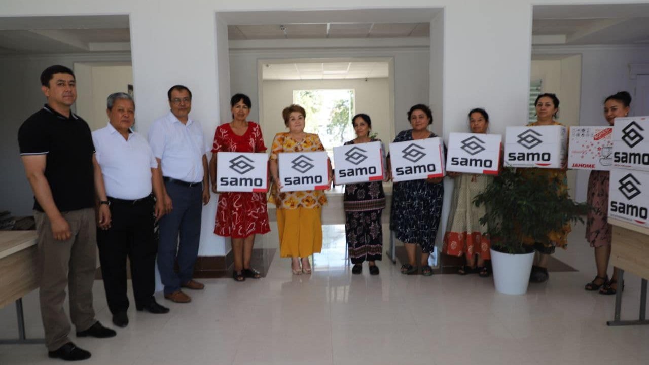 Ушбу тикув машиналари вилоят Халқ таълими бошқармаси бошлиғи ҳамда Уюшманинг ҳудудий раҳбари томонидан таълим муассасаларига топширилди.